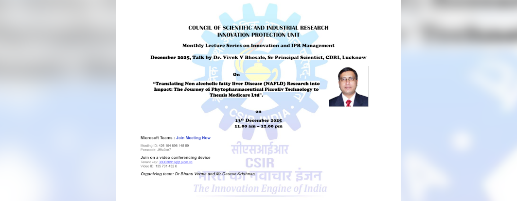 "गैर-अल्कोहलिक फैटी लिवर रोग (एनएएफएलडी) अनुसंधान को प्रभाव में बदलना: फाइटो-फार्मास्युटिकल पिक्रोलिव प्रौद्योगिकी से थेमिस मेडिकेयर लिमिटेड तक की यात्रा" पर मासिक व्याख्यान श्रृंखला।